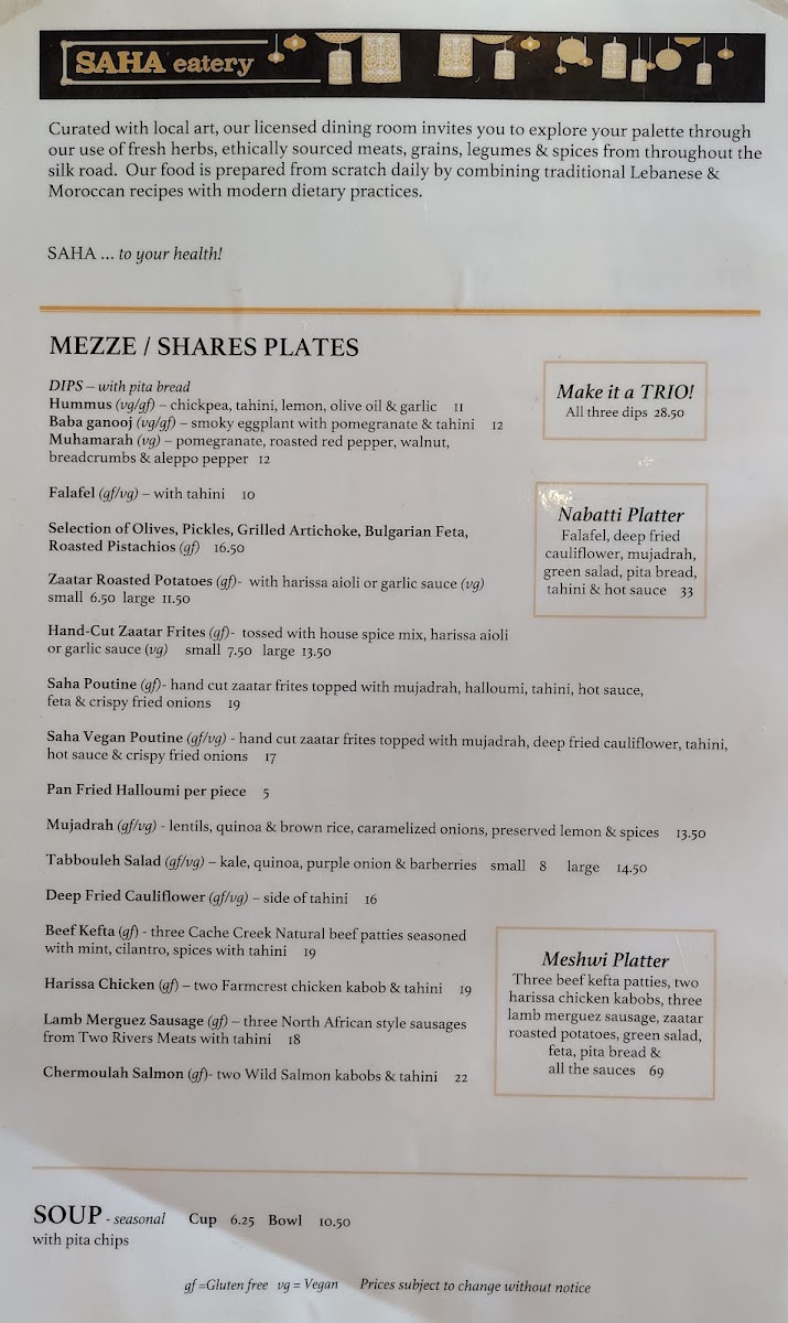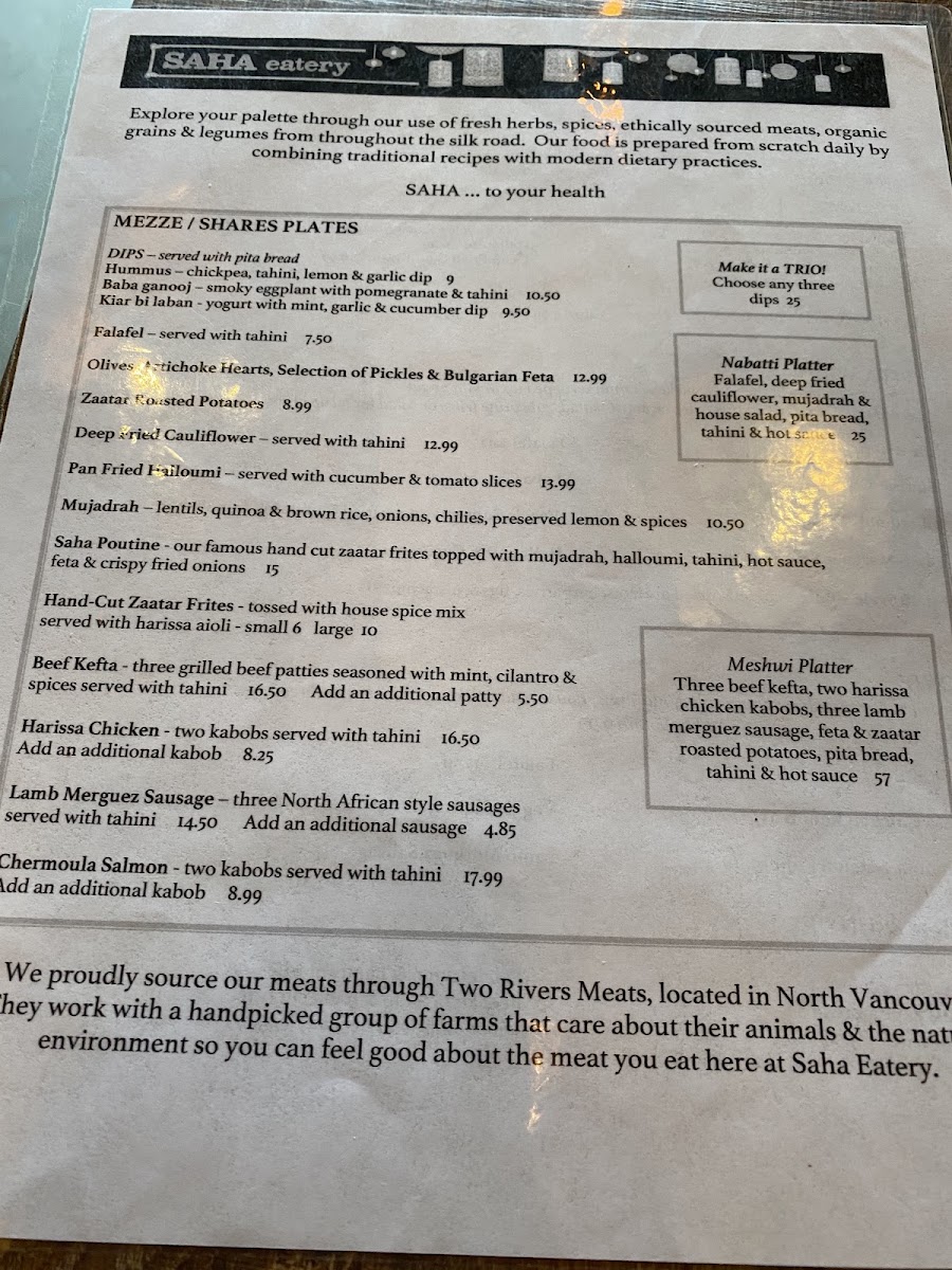 Saha also caters to groups with its Meal Deals, perfect for sharing, featuring an array of vibrant salads, warm pita, and delectable sauces. Each dish embodies Saha’s commitment to quality and taste.